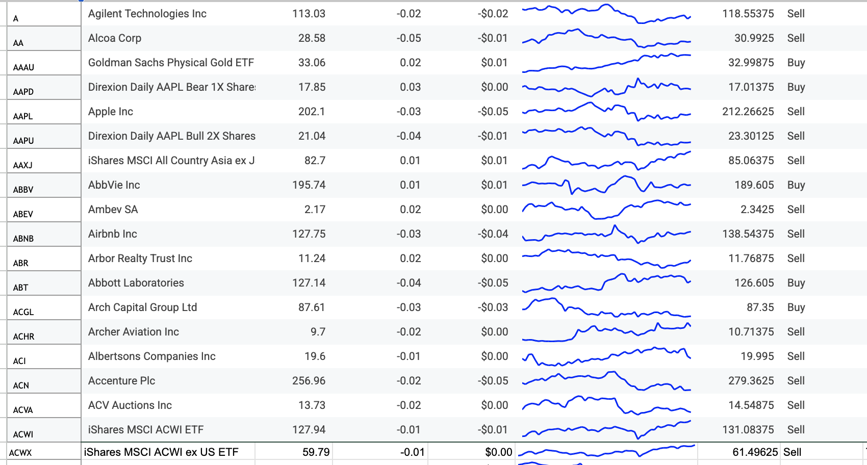 • Type in the stocks you are watching/in your portfolio (add as many stocks/etfs as you want in empty rows)